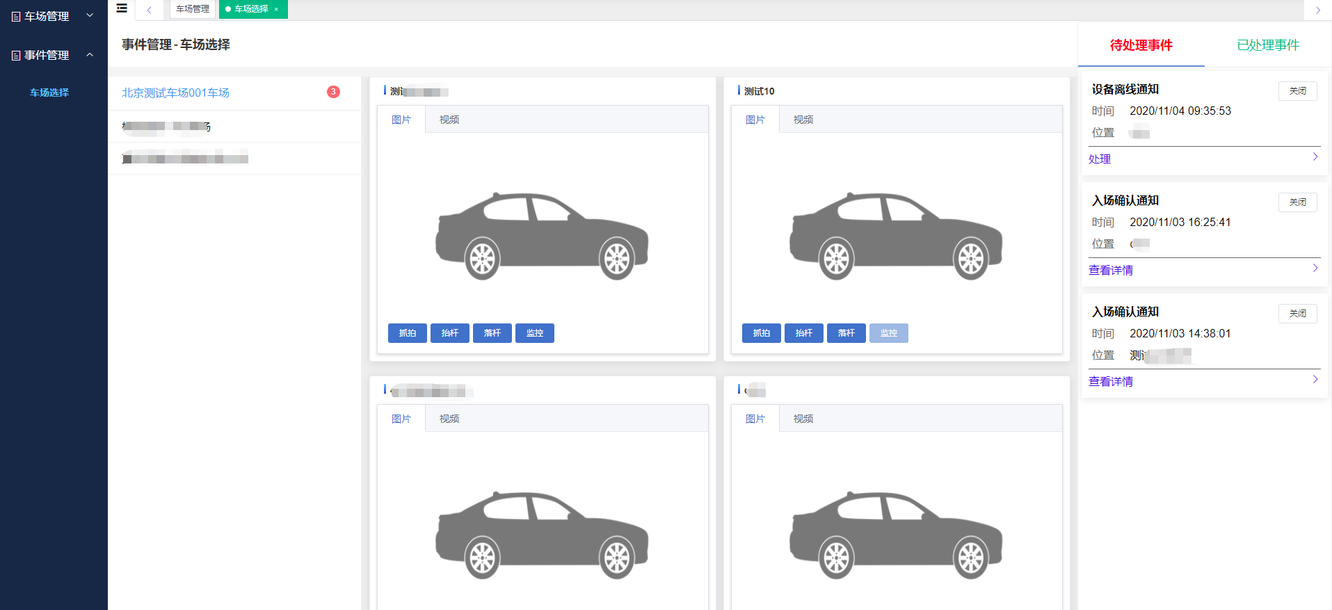 運維后臺可同時查看所管轄的多個車場的通道視頻、操作抬桿/落桿、接聽現(xiàn)場呼叫以及處理異常事件