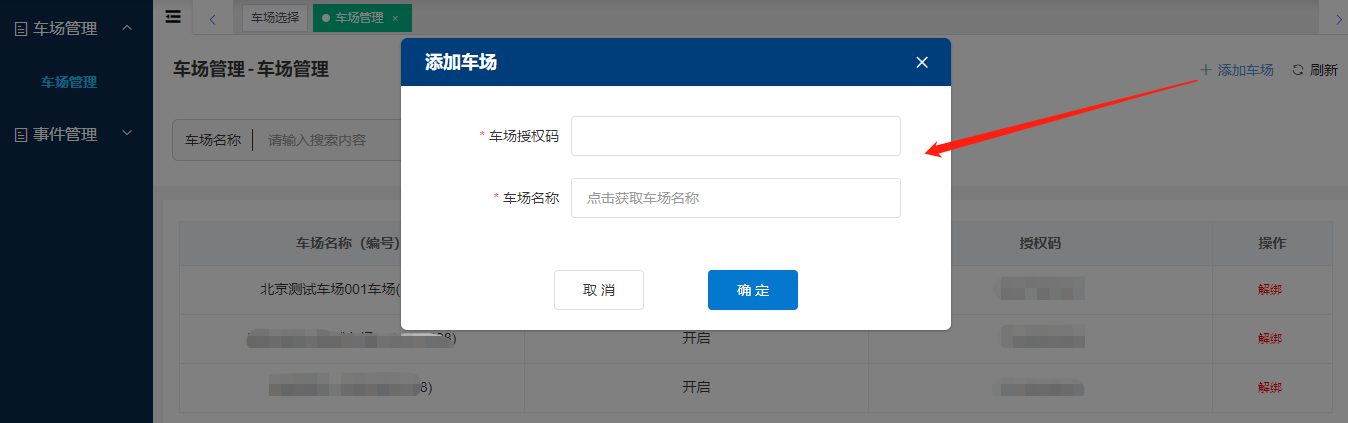 運維平臺綁定車場: