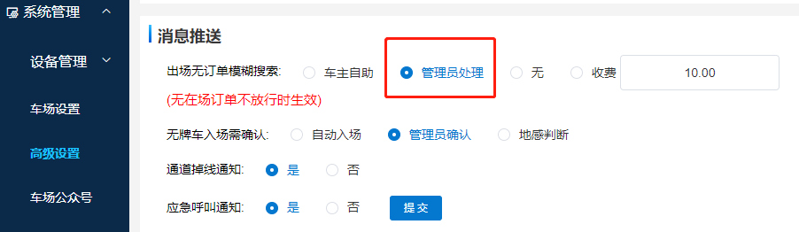 車場(chǎng)在設(shè)置了出場(chǎng)無(wú)訂單需管理員處理時(shí),在車輛到達(dá)出口識(shí)別到車牌,未匹配到在場(chǎng)訂單時(shí),會(huì)推送出場(chǎng)異常處理事件給當(dāng)前通道的管轄人員,管理員可在web后臺(tái)進(jìn)行手動(dòng)選擇相應(yīng)的訂單,確認(rèn)匹配后會(huì)再次下發(fā)該訂單的價(jià)格播報(bào),方便車主進(jìn)行支付。