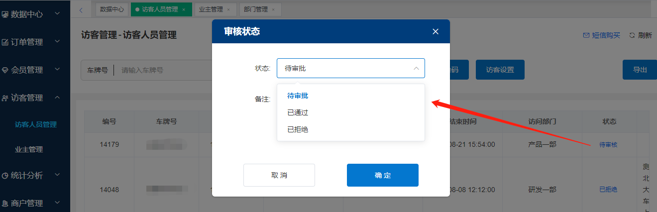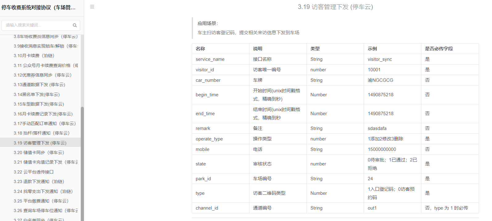 訪客信息審核狀態(tài)有變化時,同樣調(diào)用接口3.19下發(fā)到車場本地收費系統(tǒng)。之后該車進出場時收費系統(tǒng)可以根據(jù)該訪客信息進行判斷。