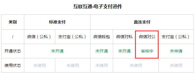 微信直連對公進(jìn)件簽約完成權(quán)限開通后: