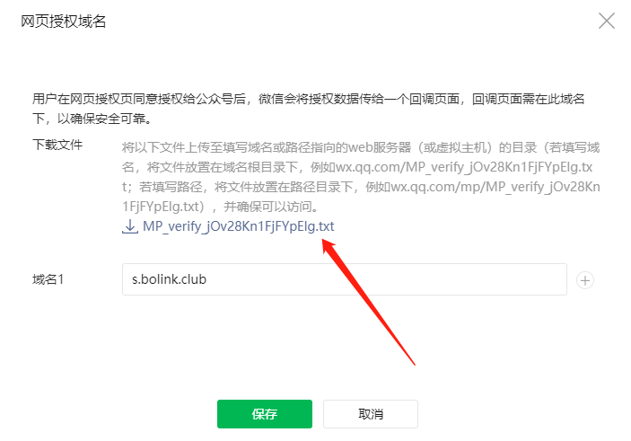 5、公眾號需要配置網(wǎng)頁授權(quán)域名 s.bolink.club(下載圖中文件發(fā)給支付平臺人員進(jìn)行配置)