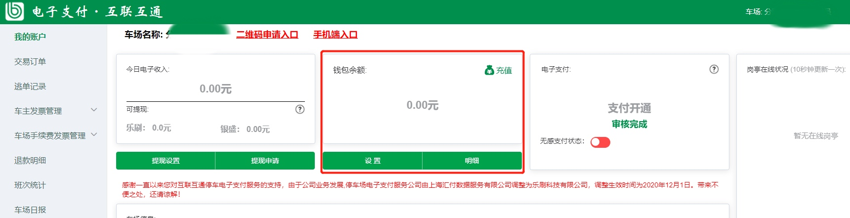 互聯(lián)互通車場后臺我的賬戶頁面: