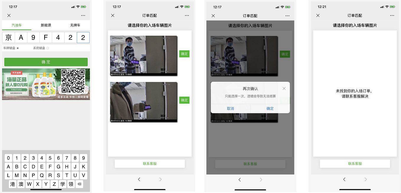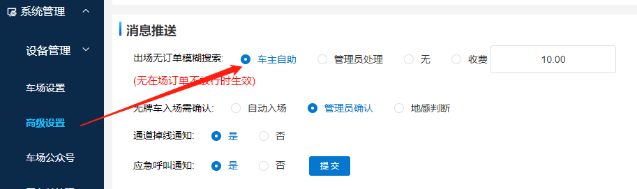 當(dāng)車場(chǎng)設(shè)置出口無(wú)訂單不放行時(shí),可在高級(jí)設(shè)置里打開(kāi)“車場(chǎng)自助”,之后車主可以在未匹配到訂單時(shí),按提示掃碼輸入自己車牌進(jìn)行主動(dòng)搜索相似訂單,這樣處理出、入場(chǎng)識(shí)別有差的情況。