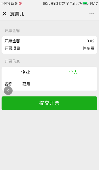 注:支付寶支付的完成頁不能開票,可以通過微信搜索“智慧停車云”公眾號開票
