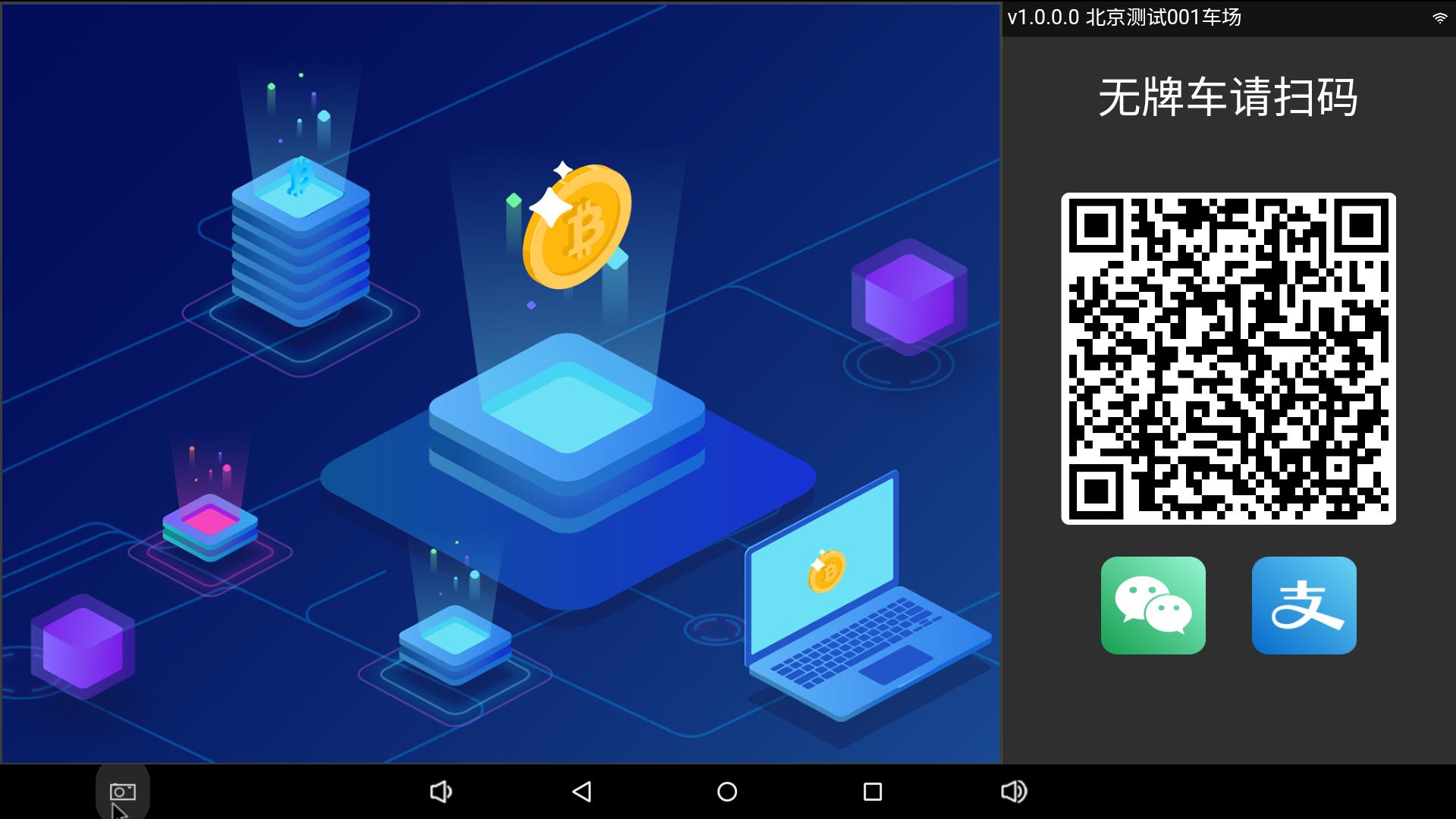 相機(jī)識(shí)別到車牌,智慧屏更新帶有車牌、時(shí)間等信息的二維碼,提示車主掃碼確認(rèn)入場(chǎng)。(2分鐘有效)