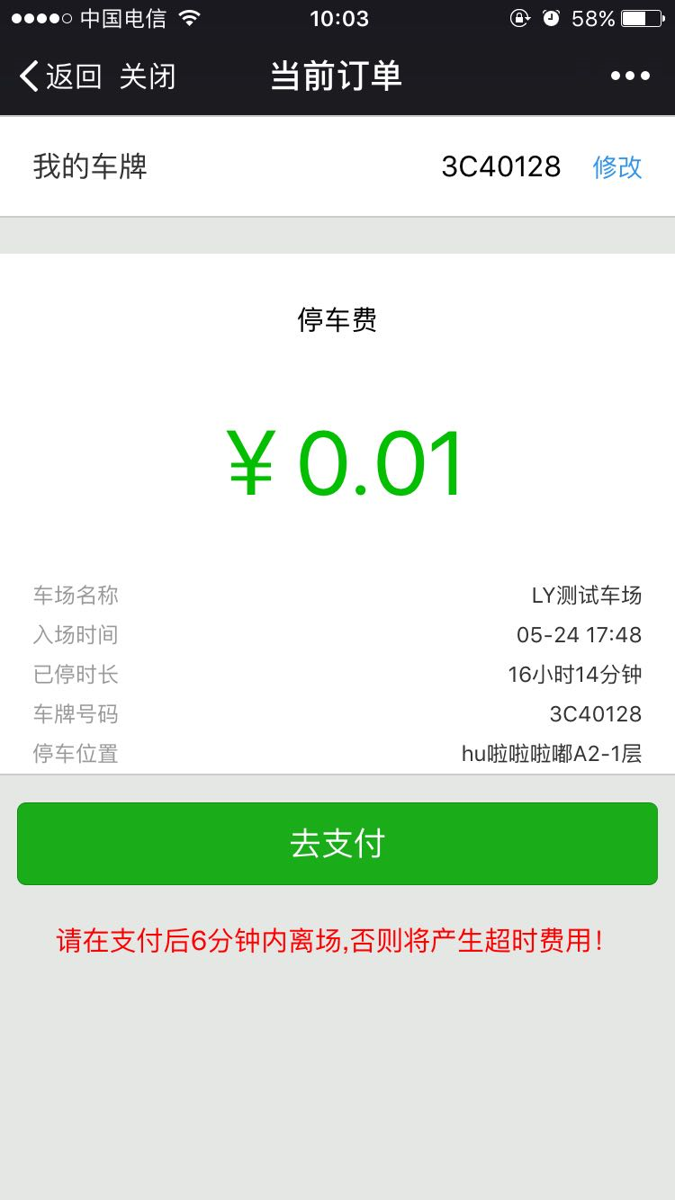 車主關注了指定公眾號后,綁定車牌可對其在場訂單進行預付。