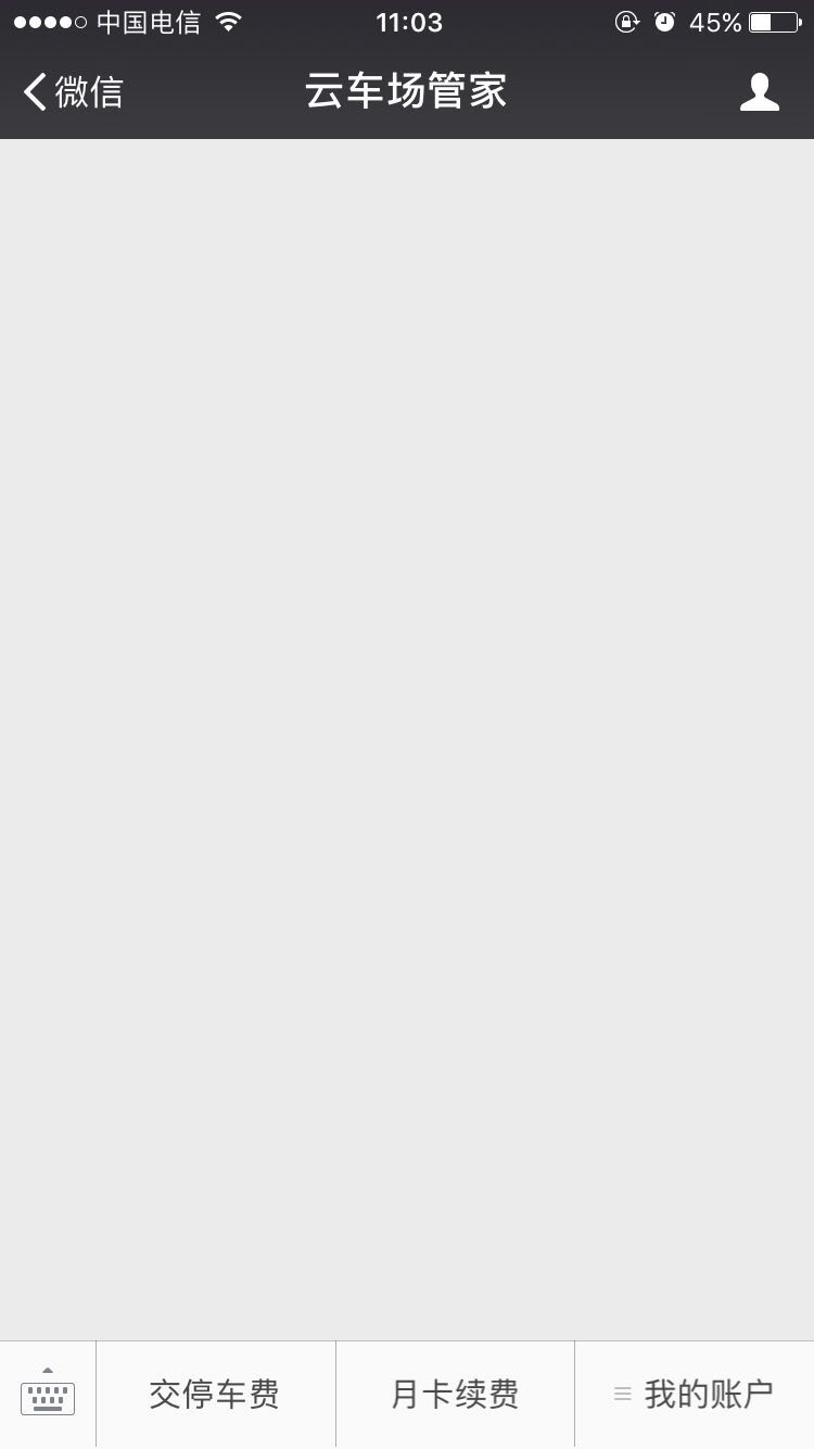 如上圖,點擊公眾號頁面右下角的“我的賬戶”按鈕,先添加車牌,再點擊左下角的“交停車費”按鈕,查詢當前車牌的在停訂單。(無牌車會自行綁定)