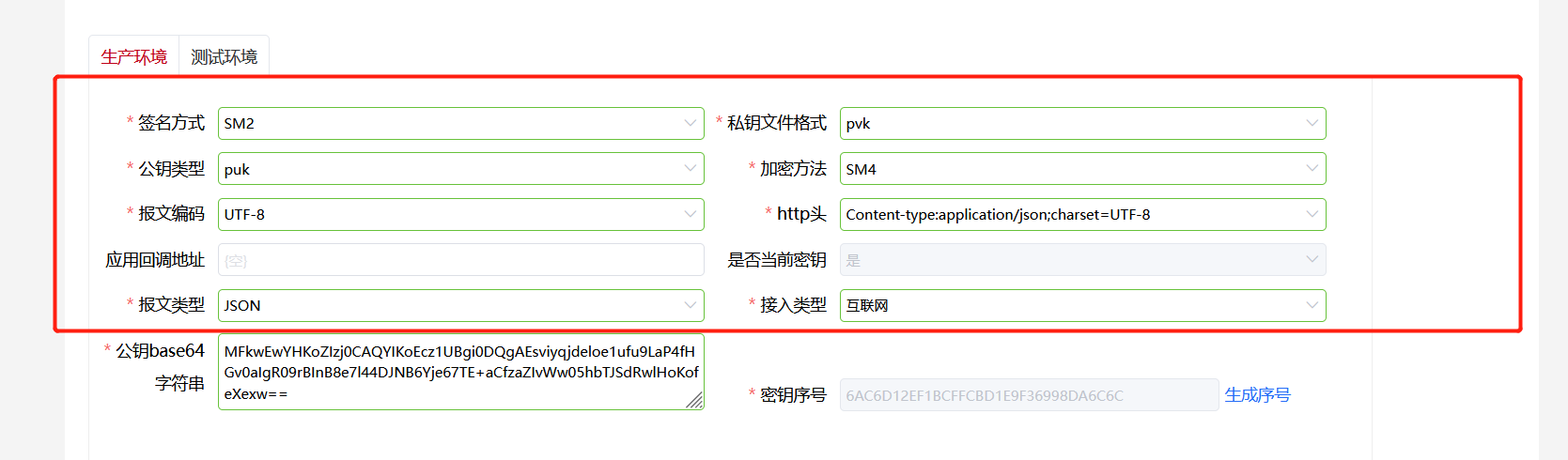 c.上圖紅框圈起來的內(nèi)容就按照圖中的內(nèi)容去填寫,公鑰base64字符串找銀行方協(xié)助生成,生成后的 .pvk、.puk文件按照參數(shù)4、5格式交給泊鏈研發(fā)進(jìn)行配置