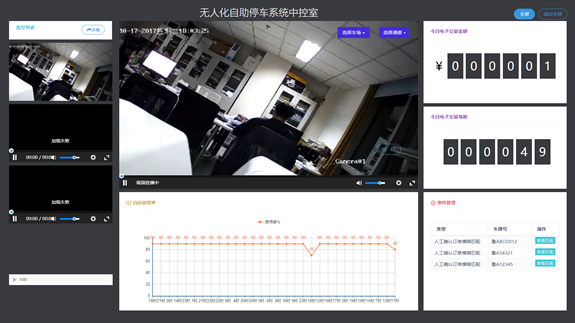 隨著無人化車場的普及,云端中央監(jiān)控室功能逐步強大。查看各個監(jiān)控畫面、輔助控制道閘開合、與場內需要援助的車主遠程對話并處理車場的異常事件,同時對當天的交易賬目進行預覽,極大程度的節(jié)約資源、提高車場通行效率。
