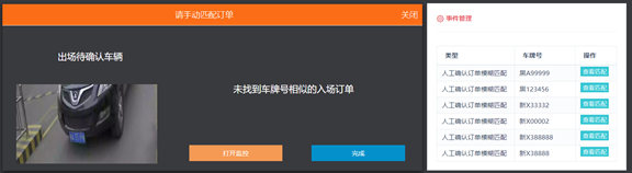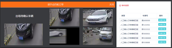 該截圖右下角的事件管理列表,顯示當前登錄的集團或車場收到來自車場的所有事件。點擊某個事件的“查看匹配”按鈕,彈出匹配出的訂單圖片列表,如下圖: