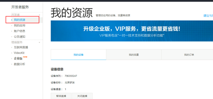 2、在螢石云登錄就能查到剛才綁定的設備,獲取它的在線播放地址