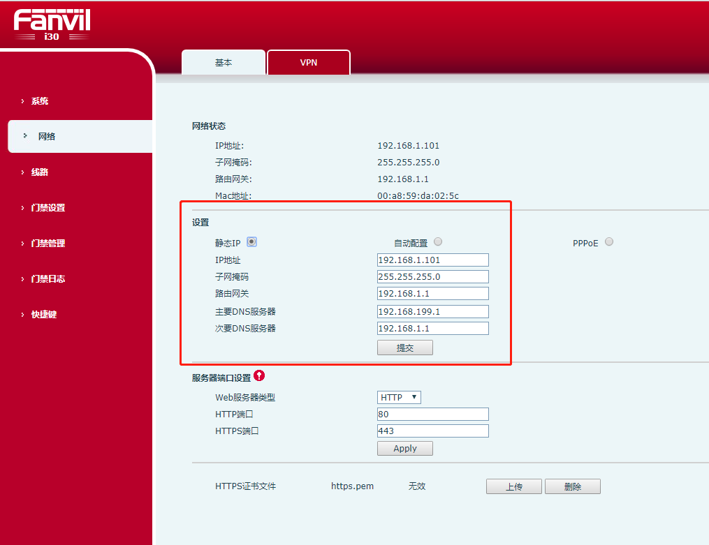 (1)登錄后臺打開網絡模塊,可以按照當前連接網絡的情況自行設置靜態(tài)IP。